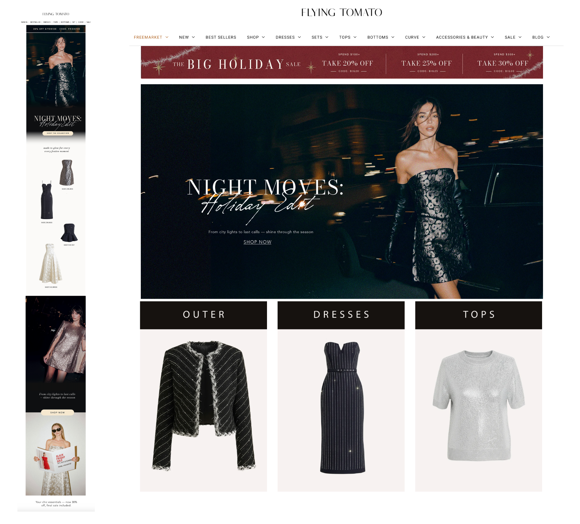 Night Moves is a holiday mini-campaign built from a shared moodboard direction. I generated and refined the AI imagery and handled the photo adjustments, typography, and layout design for banners and email marketing.